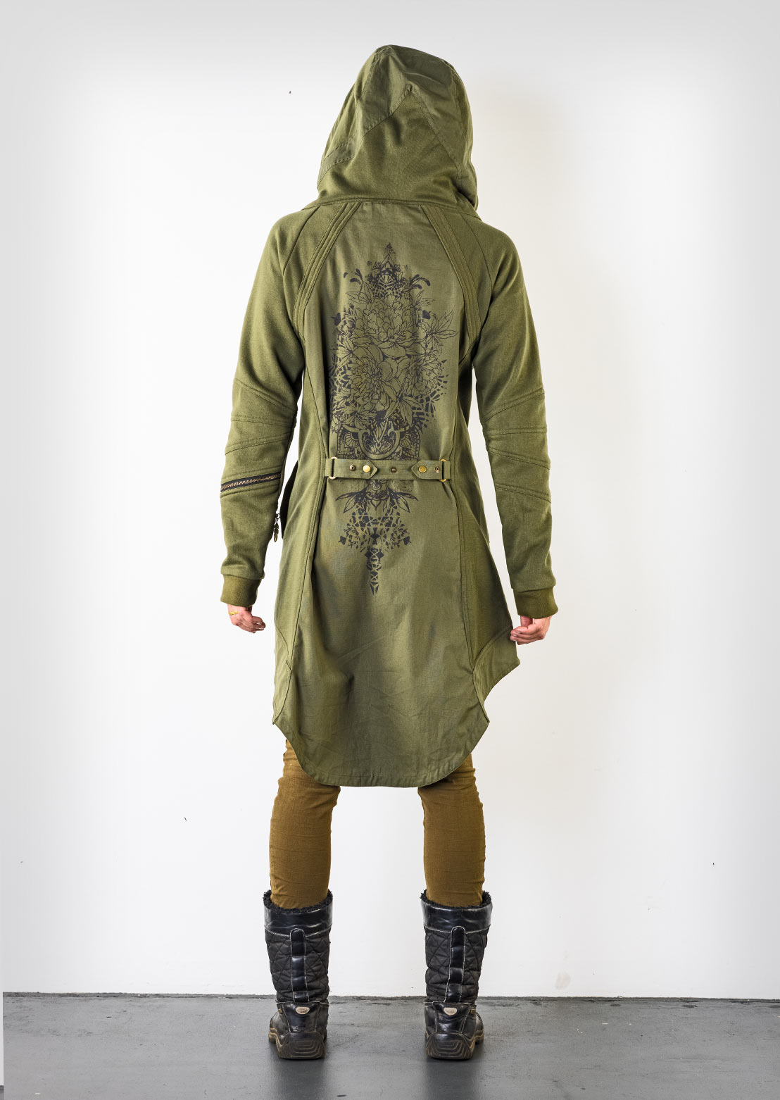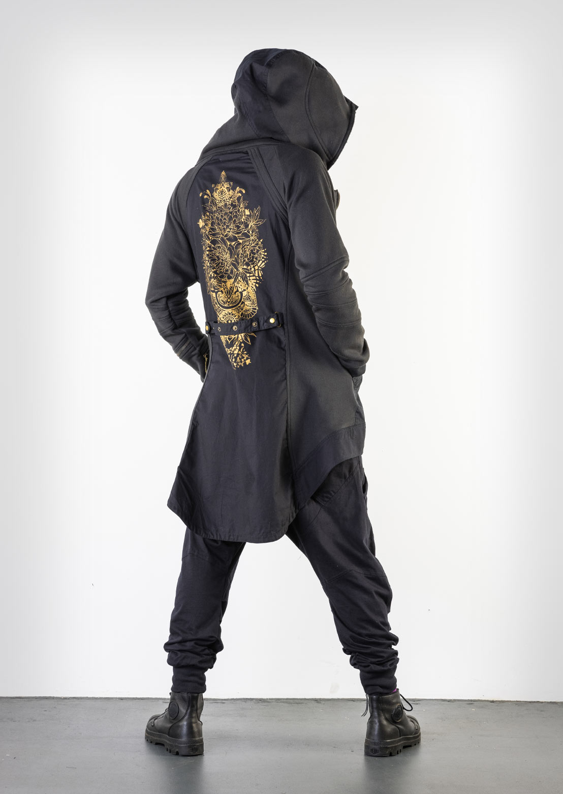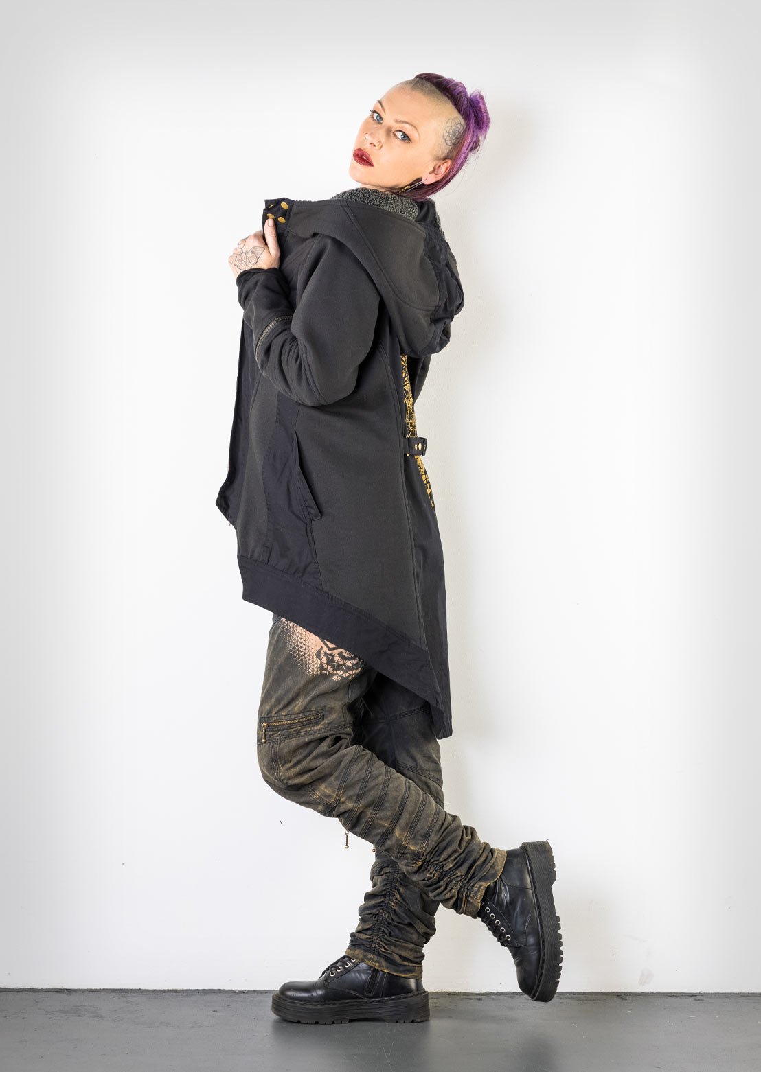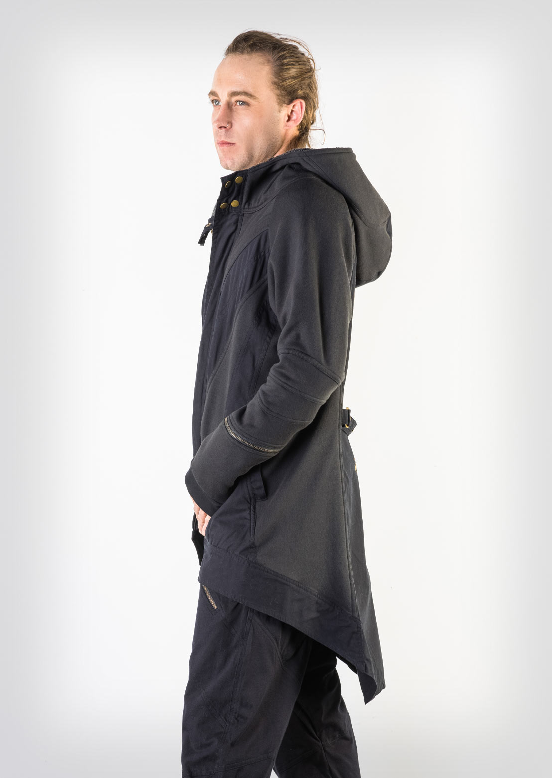 This UNISEX jacket is truly a work of art. Its unique cut can be worn in multiple ways depending on what you wear it with or how cozy you want to be.