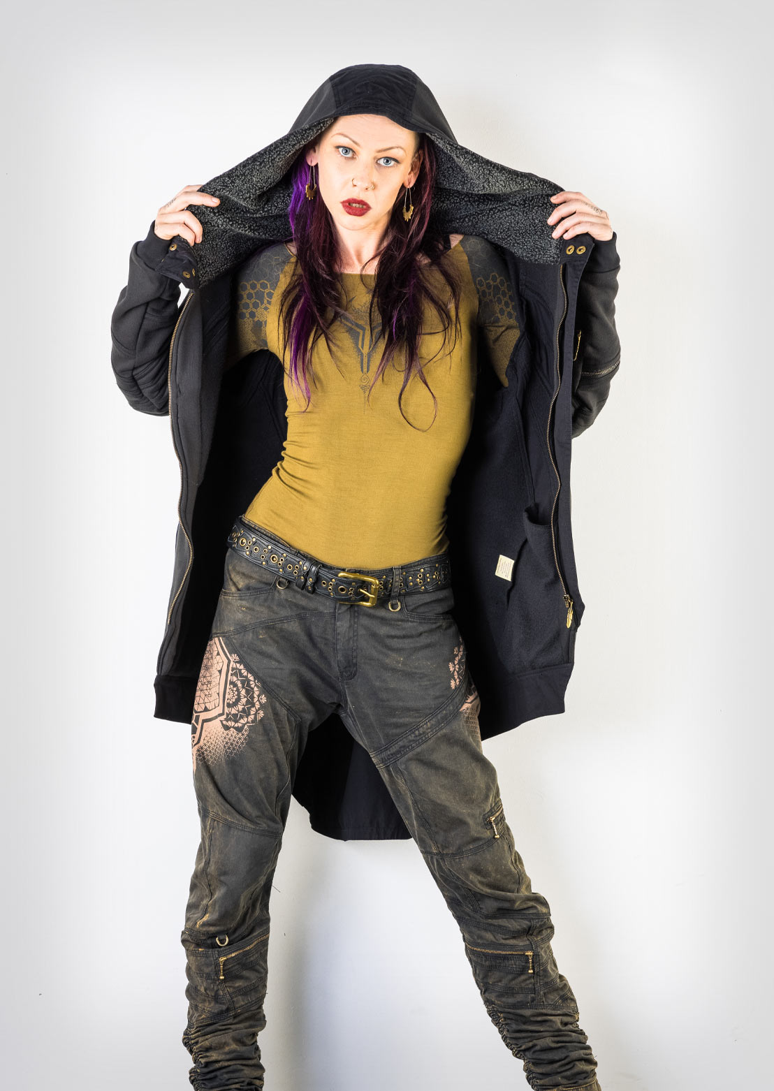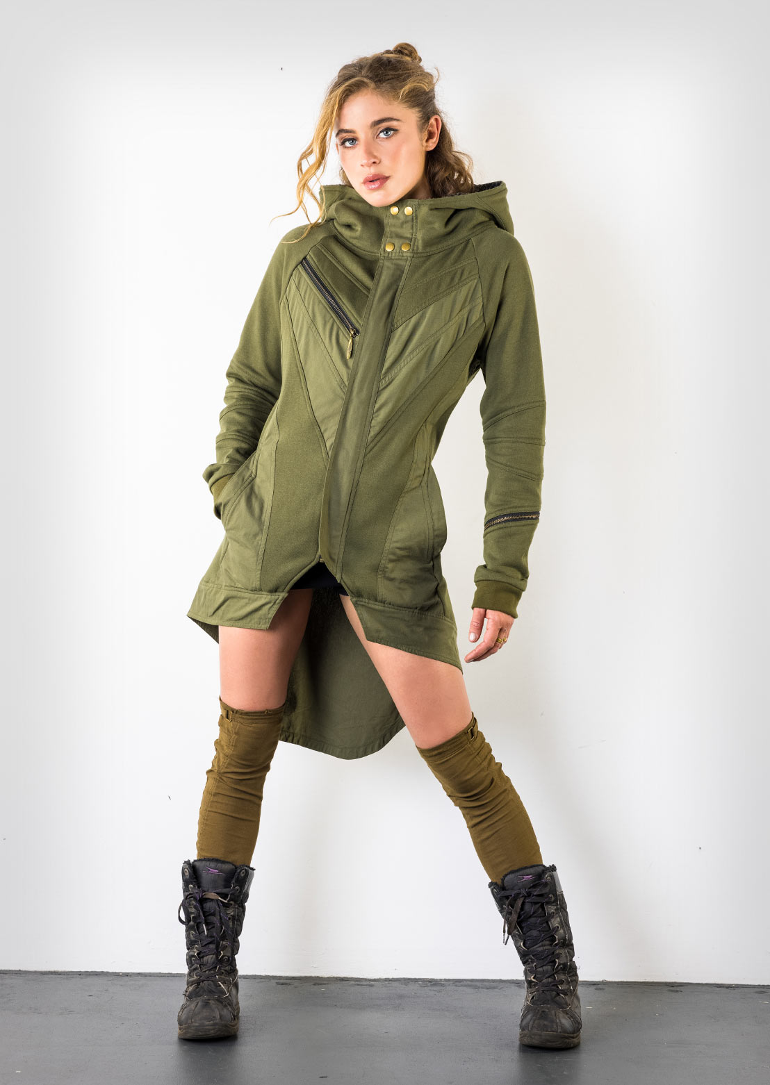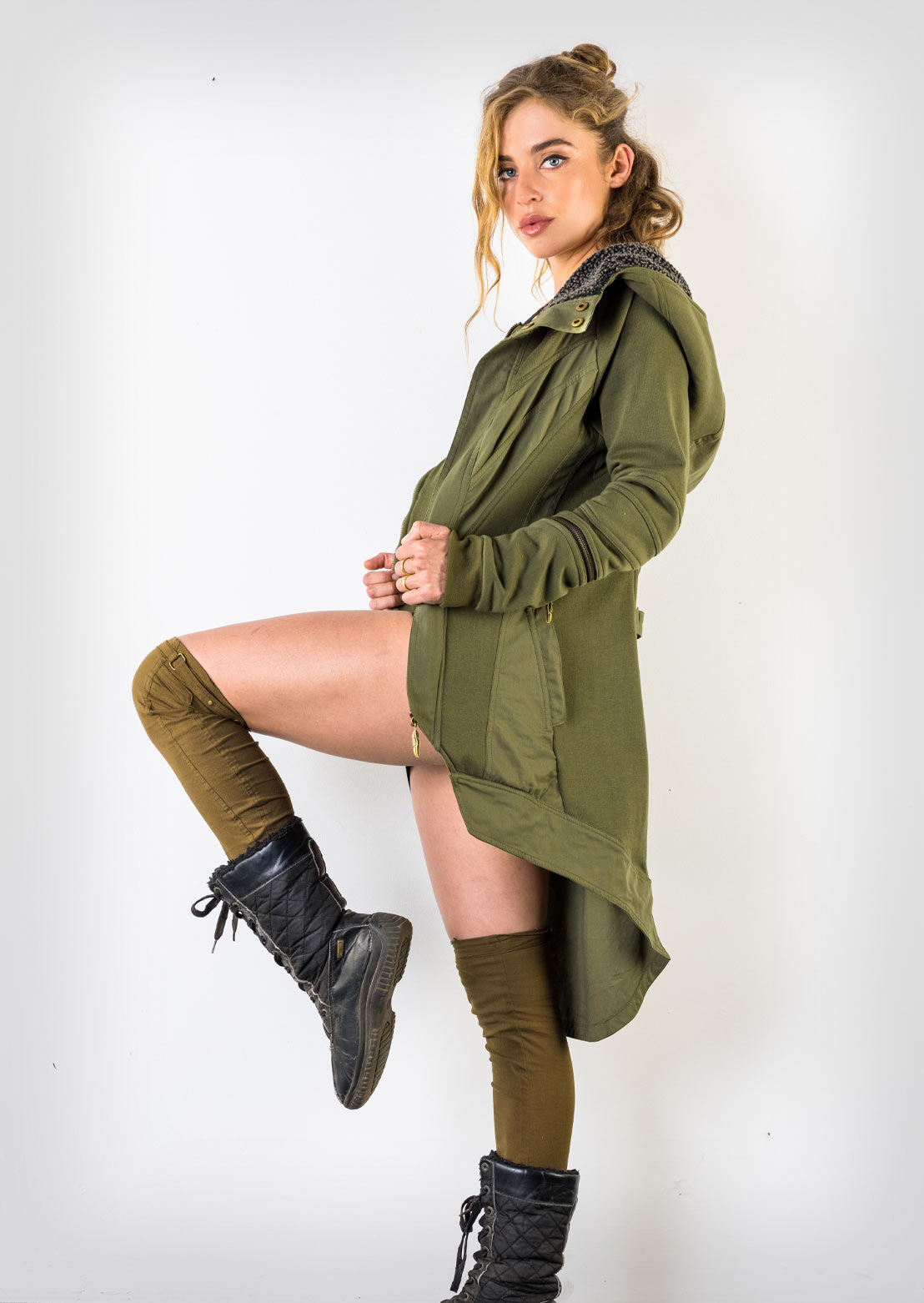 Featuring many pockets, zips, and a big hood! The high collar has a faux fur inside, for extra warmth and style.
