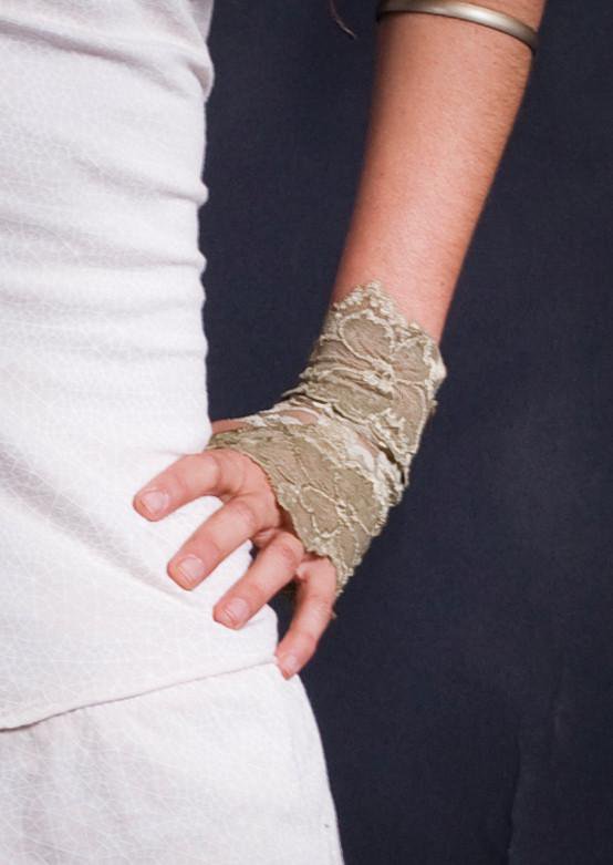 Wisps of stretch lace entwined to adorn hands and wrists.