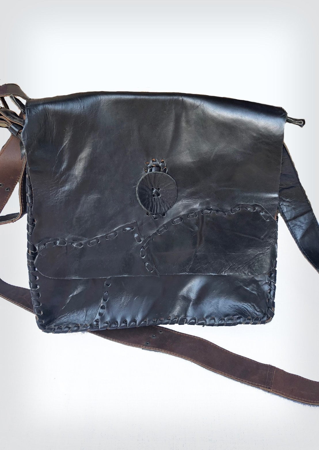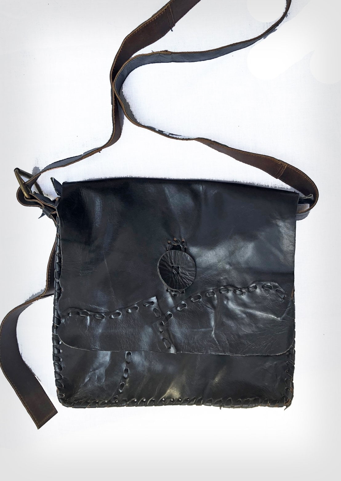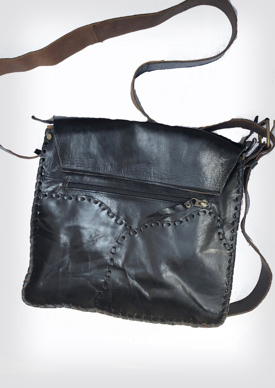 Size -30 x 25cm and 9cm depth.with a zipper pocket on the front and on the back. Has a wide adjustable shoulder strap.