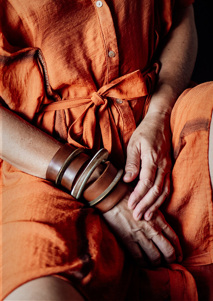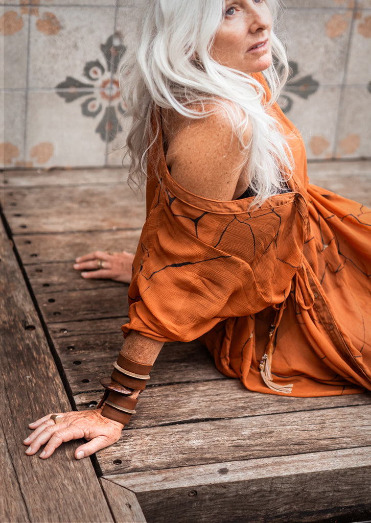 For a bolder look, layer it as a Double Ironhide or pair it with the Tribal Disc Cuff to create a complete tribal effect.