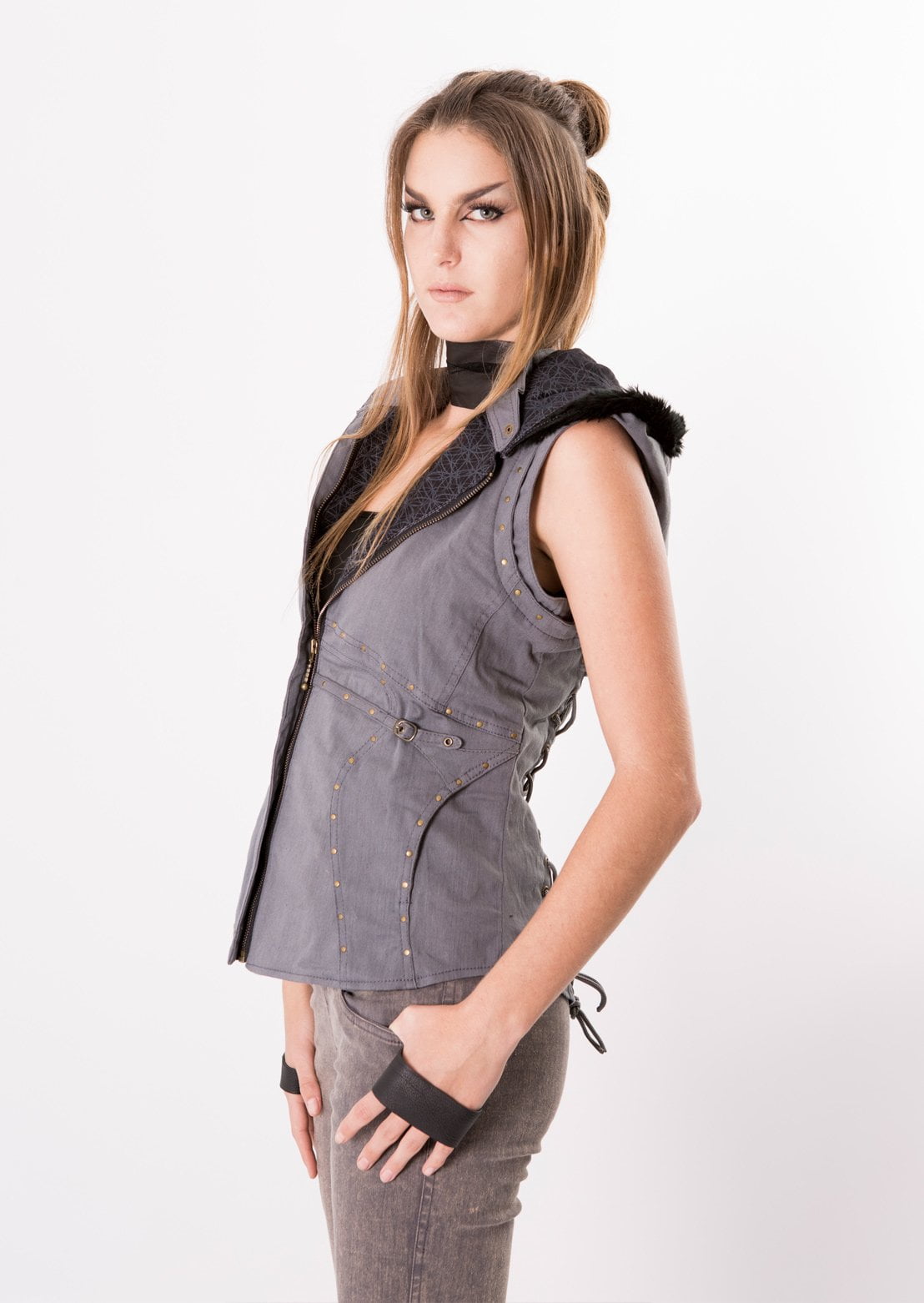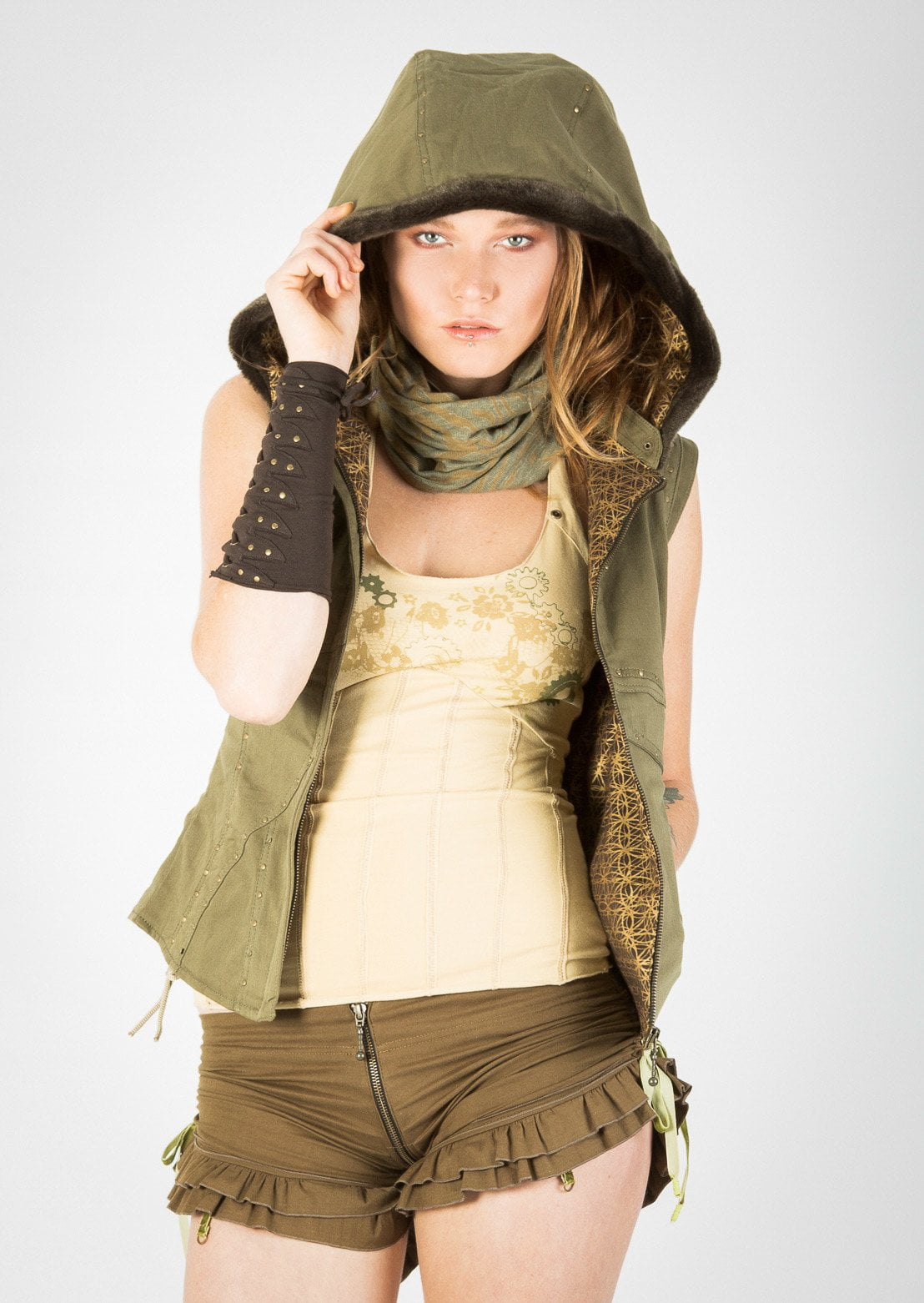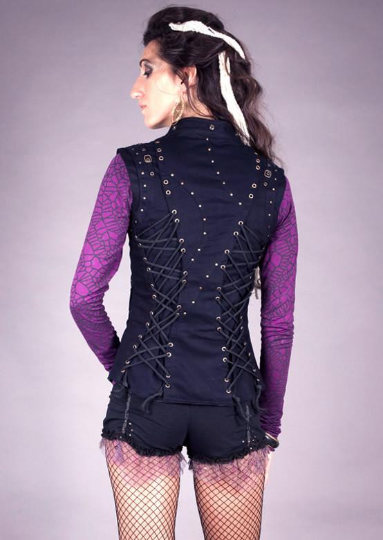 The Sphere Vest is one hot number! The cut of this vest gives you that slick feminine, super cool look with a steamy sexy style. Cleverly stitched together, this vest will keep you as snug as a bug, while you rock out at a festival or party.